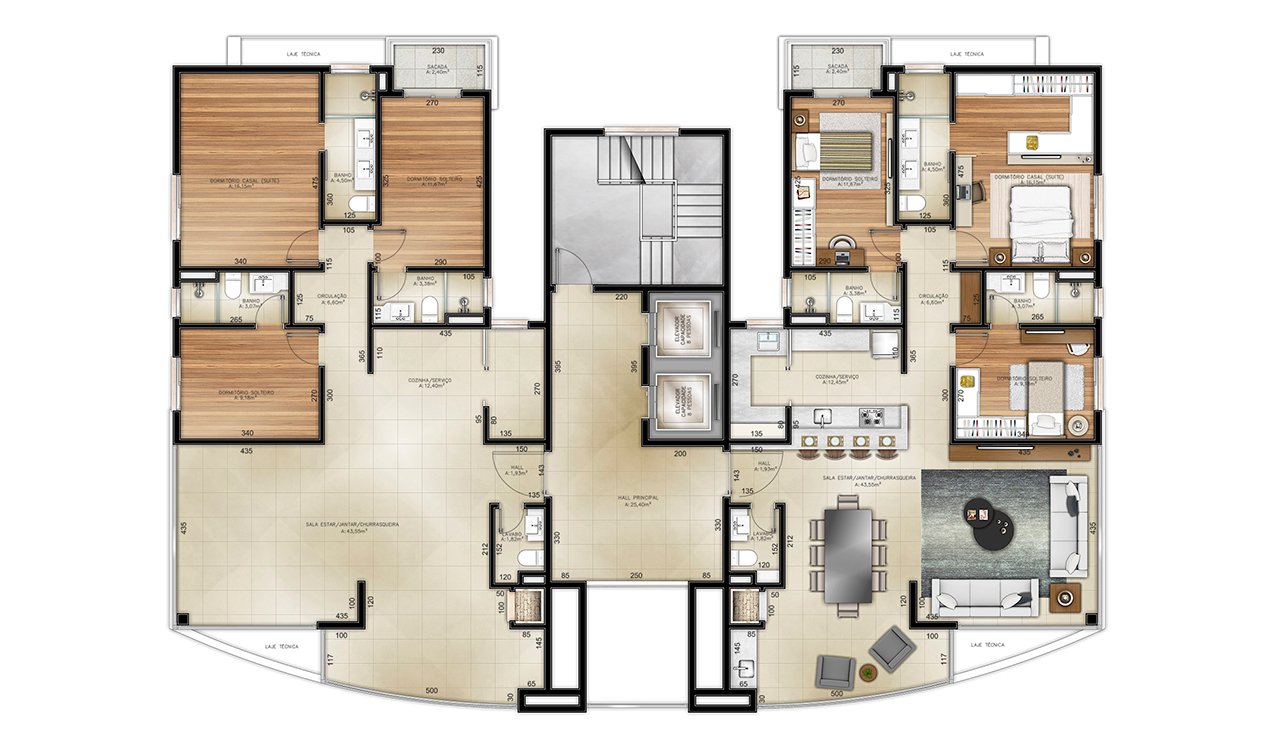 Com exclusividade de dois apartamentos por andar, o Mirage Residence proporciona amplo espaço e toda a privacidade e conforto que você busca para se refugiar da correria do dia a dia.