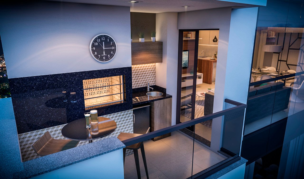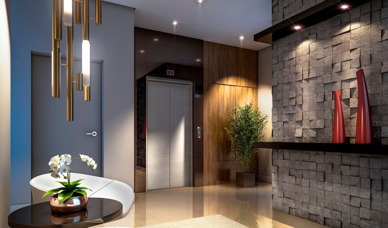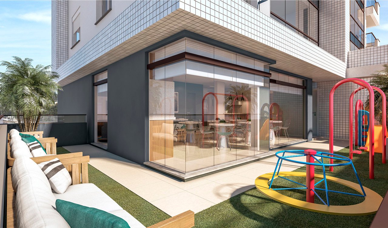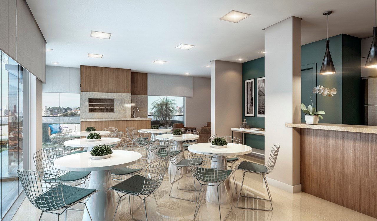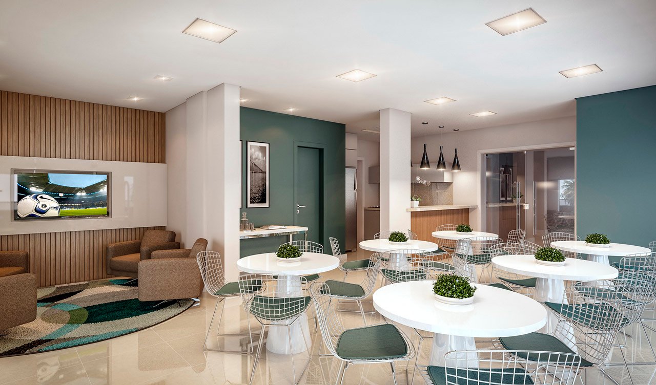 As áreas de uso comum são entregues totalmente mobiliadas e decoradas de acordo com sua função. O hall traz requinte para uma 1ª boa impressão, o salão de festas tem a sofisticação para s.uas celebrações