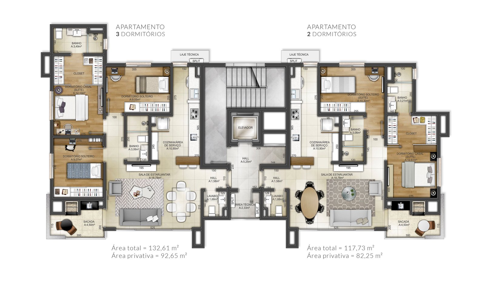 Os acabamentos foram projetados para o seu conforto, com porcelanato na área social, piso laminado nos dormitórios, rebaixo em gesso, espera para split e água quente e esquadrias em PVC.